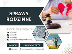 Adwokat Lublin Małgorzaty Pietrzak Kancelaria Adwokacka świadczy usług prawne i zajmuje się sprawami z głównie zakresu prawa rodzinnego (rozwód, alimenty, podział majątku wspólnego, kontakty z dzieckiem). Prowadzi również sprawy karne (w tym dozór elektroniczny) oraz sprawy cywilne (np. zniesienie współwłasności, odszkodowania). Kancelaria Adwokacka Lublin ma w swojej ofercie również sprawy spadkowe (stwierdzenie nabycia spadku, zachowek, dział spadku). Adwokat z Lublina świadczy usługi prawne na rzecz przedsiębiorców (stała obsługa prawna, porady prawne z zakresu prawa pracy, sprawy z zakresu prawa gospodarczego). Dobry kontakt z klientem, skrupulatność i profesjonalizm to znak rozpoznawczy Kancelarii. Zapraszam do współpracy!